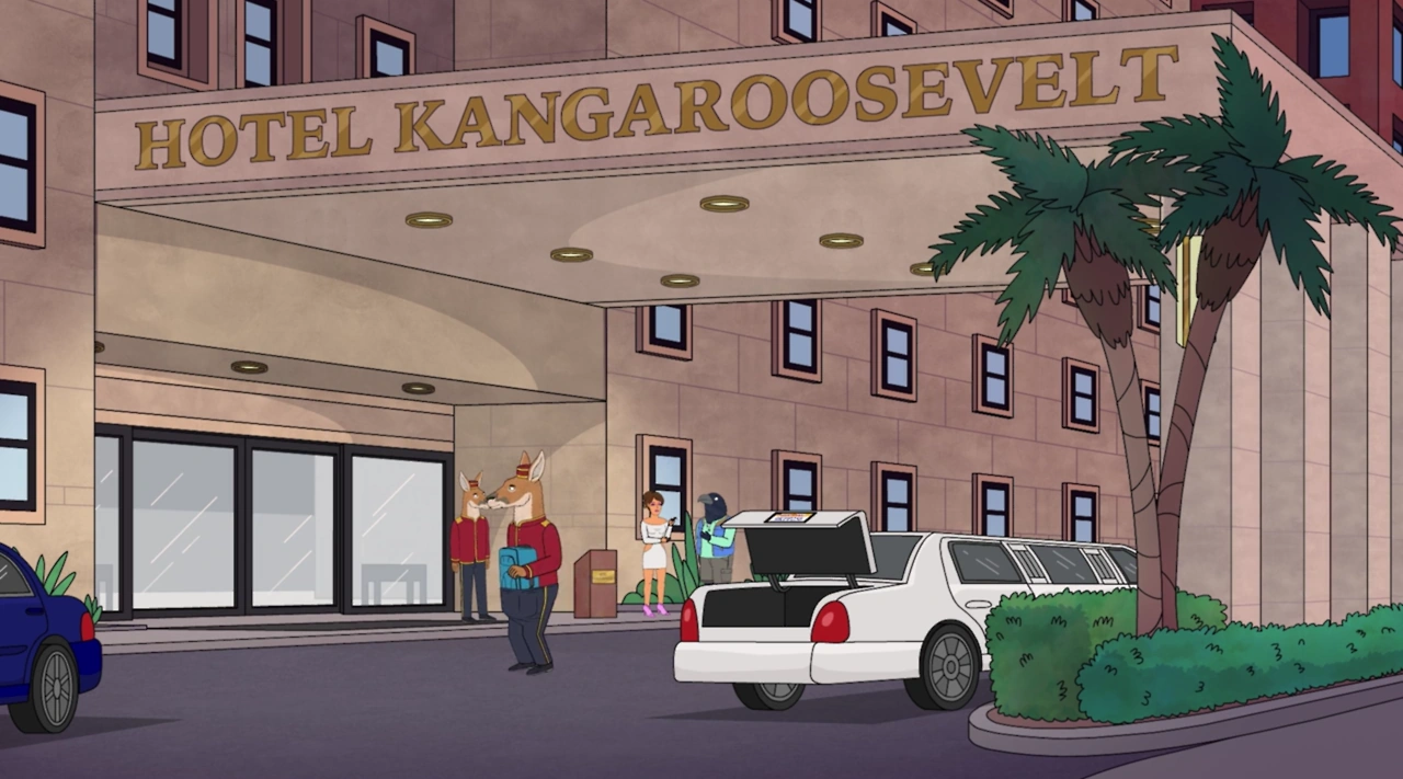 Hotel Kangaroosevelt is a hotel located in Hollywoob. It is based on the real-life Hotel Roosevelt. Although it is worth noting, the real-life version is located in Manhattan, New York, whereas the fictional version is located in Los Angeles, California.