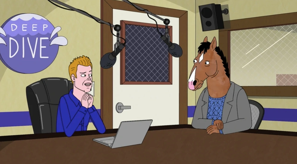 In BoJack the Feminist, BoJack is on The Deep Dive with A Ryan Seacrest Type.